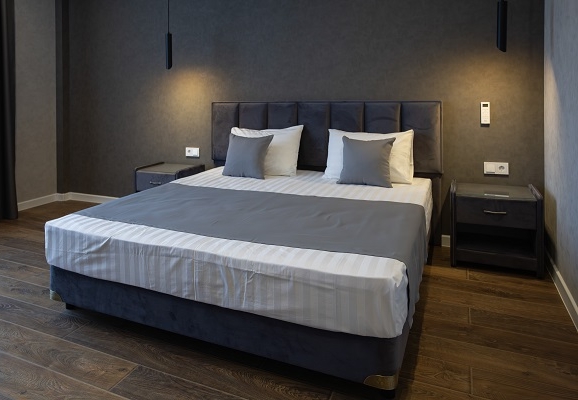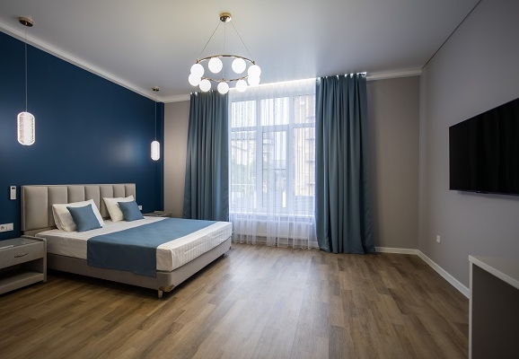 Люкс «Лазурная Вершина» / «Люкс Синий» Площадь: 34 кв. м Вместимость: 2 + 1 ________________________________________ Атмосфера и образ Люкс «Лазурная Вершина» вдохновлён красотой Кавказских гор, уходящих в синеву неба. Элегантные синие акценты в интерьере создают атмосферу спокойствия и поэтической глубины, словно строки А. С. Пушкина, посвящённые Кавказу. ________________________________________ Уют и комфорт Номер подойдёт для тех, кто ищет сочетание стиля и гармонии: • Кровать king size с ортопедическим матрасом для глубокого и здорового сна. • Просторная планировка, позволяющая отдохнуть с комфортом. • Телевизор и кондиционер — для уюта в любое время года. ________________________________________ Удобства для вашего отдыха • Мини-холодильник • Фен • Тапочки • Косметический набор • Бутилированная вода ________________________________________ ✨ Люкс «Лазурная Вершина» — это эстетика Кавказских вершин и лёгкость синего неба, воплощённые в уютном пространстве для двоих.